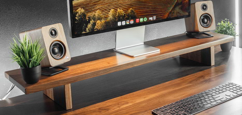 Match your desktop and free up desk space. The Desky Monitor Stand allows for a more ergonomic line of sight by decreasing neck strain. You can also stow away small accessories or books, which minimizes desk clutter.